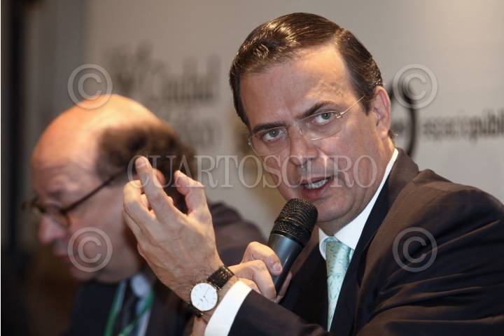 MÉXICO, D.F., 17NOVIEMBRE2010.- Eduardo Rihan, Conseiller Regional de Región Ile de France, Paris; Josep Roig, secretario general de Metropolis; Marcelo Ebrard, jefe de gobierno del Distrito Federal, Felipe Leal, secretario de Desarrollo Urbano y Vivienda del D.F., durante la Reunión de la Comisión 4: Megaciudades de Metrópolis, donde se tiene como objetivo acordar estrategias y reflexiones comunes entre todas las ciudades en los ramos como son Nuevo Urbanismo, Gestión Urbana y Periferias; reunión que se realizo en un hotel de la colonia Polanco. FOTO: RODOLFO ANGULO/CUARTOSCURO.COM