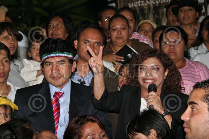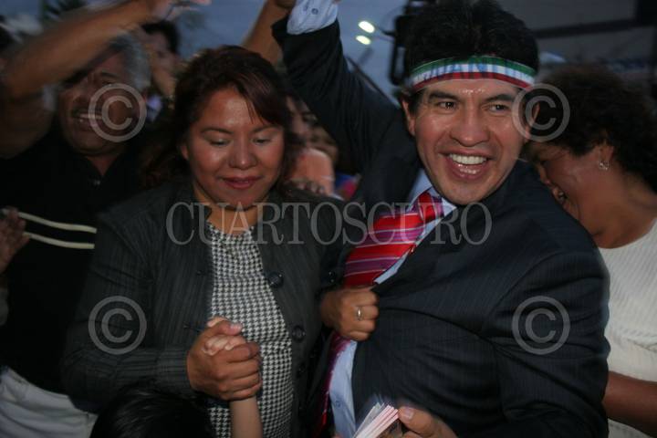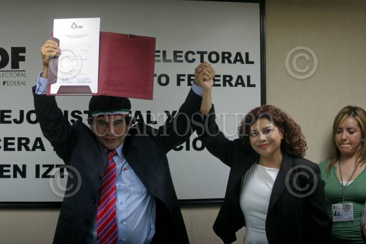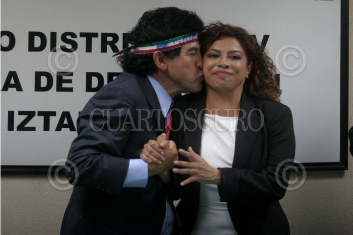 MÉXICO, D.F., 0JULIO2009.- Rafael Acosta "Juanito" delegado electo de Iztapalapa y la perredista Clara Brugada, durante la entrega de la constancia la cual acredita a "juanito" como ganador de la elección de 5 de julio en Iztapalapa. FOTO: RICARDO CASTELAN/CUARTOSCURO.COM