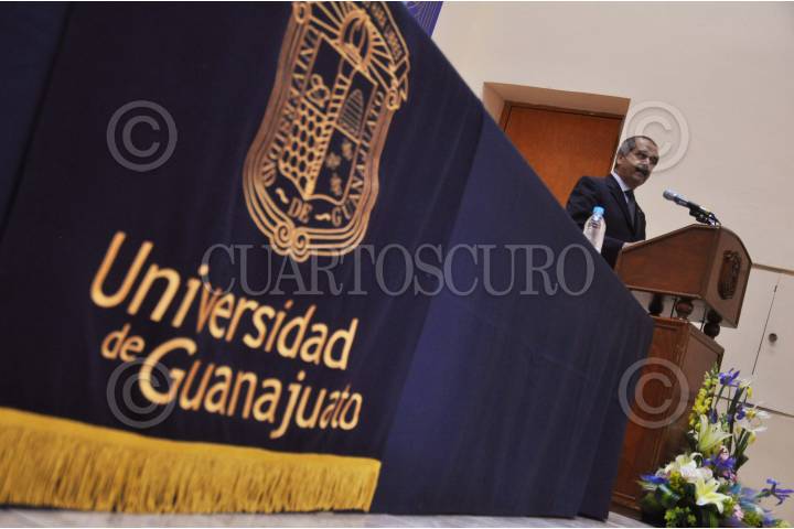LEÓN, GUANAJUATO, 12ABRIL2010.- José Ángel Cordova Villalobos, Secretario de Salud en compañía del José Luis Lucio Martínez, Rector de la Universidad de Guanajuato durante la ceremonia de acreditación de la Licenciatura de Medicina de la Universidad de Guanajuato por parte del Consejo Mexicano para ala acreditación de la Educación Medica A.C. FOTO: EDUARDO MORALES/CUARTOSCURO.COM