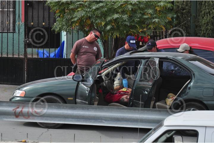 CIUDAD JUÁREZ, CHIHUAHUA, 24OCTUBRE2011.- Sujetos armados dispararon en contra de los tripulantes de un automóvil Altima que salía del fraccionamiento Santiago Troncoso y mataron a dos hombres y causaron lesiones leves, con esquirlas de bala, a una bebé de meses que viajaba con ellos. Fue en las calles Día del Estudiante y Día del Maestro de dicho fraccionamiento donde los hombres armados emboscaron al automóvil Altima de color verde y le dispararon en repetidas ocasiones. Los hoy occisos iban saliendo de su vivienda cuando se perpetró la balacera por lo que la mamá salió de la casa al escuchar las detonaciones, fue así como sacó de inmediato a la pequeña del vehículo y confirmó el deceso de los dos masculinos. FOTO: NACHO RUÍZ/CUARTOSCURO.COM