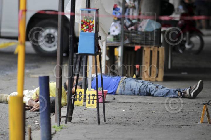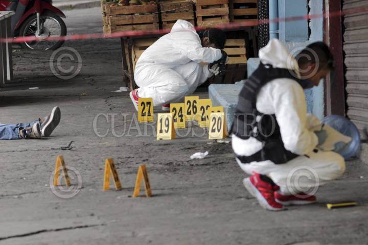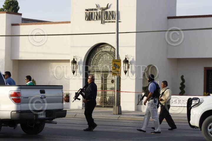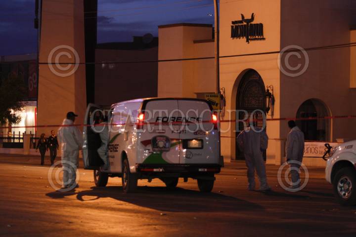 CIUDAD JUÁREZ, CHIHUAHUA, 07MAYO2013.- La tarde de este martes fueron asesinados cuatro hombres al interior de un restaurante denominado “Montana”. Los hechos ocurrieron en la avenida Manuel Gómez Morín casi esquina con la Pedro Rosales de León, donde varios sujetos armados dispararon contra cuatro clientes del establecimiento para después darse a la fuga, con rumbo al oriente de la ciudad. Tres de los hombres acribillados quedaron tirados en el piso del lugar, mientras otro más quedó sin vida arriba de una de las mesas del restaurant. Los sicarios tripulaban una camioneta de reciente modelo en color rojo, la cual ya está siendo rastreada por la autoridad ministerial y municipal. Por otra parte elementos del Servicio Médico Forense (Semefo), arribaron al lugar de los hechos para hacer el levantamiento de los cuerpos, y trasladarlos a sus instalaciones para realizar la necropsia de ley. FOTO: NACHO RUÍZ / CUARTOSCURO.COM