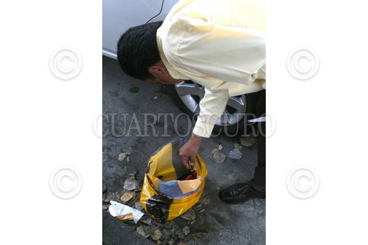 MÉXICO, D.F. 21OCTUBRE2007.-Encuentran un vehiculo abandonado en la calle Carolina donde presuntamente huyeron los sicarios que asesinaron a una familia en el interior del restaurant "las Delicias". cabe destacar que afurera del vehiculo se encontraba una bolsa con una pistola. FOTO: SAÚL LÓPEZ/CUARTOSCURO.COM