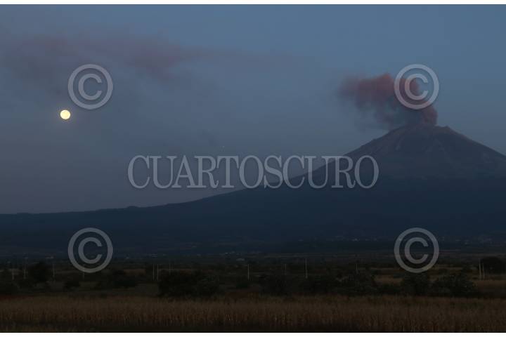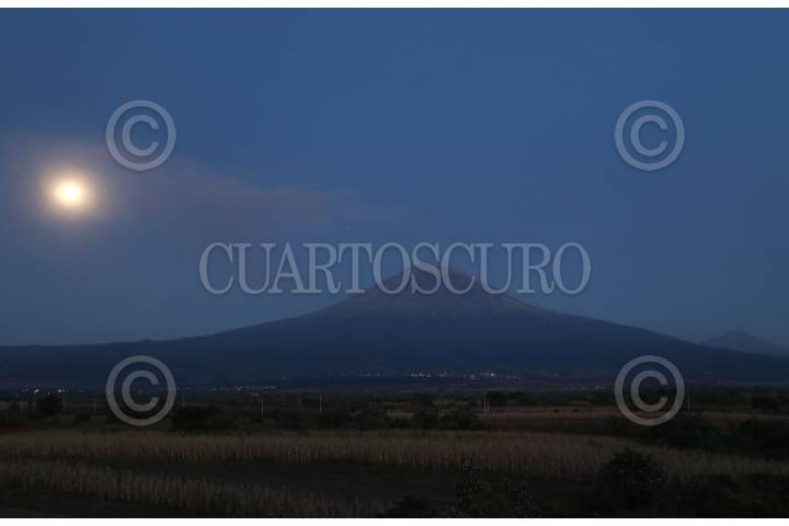 ATLIXCO, PUEBLA, 16NOVIEMBRE2024.- El ultimo reporte del Centro Nacional de Prevención de Desastres sobre la actividad del volcán Popocatépetl informa que en las ultimas 24 horas se detectaron 24 exhalaciones, acompañadas de vapor de agua, gases volcánicos y ligeras cantidades de ceniza. Durante la madrugada y al amanecer se pudo observar emisión continua de vapor de agua, gases volcánicos y ligeras cantidades de ceniza, con dispersión hacia el sur del cráter. Imagen tomada desde la comunidad de Coyula, durante la madrugada la luz de la luna llena ilumina el volcán. FOTO: MARGARITO PÉREZ RETANA/CUARTOSCURO.COM