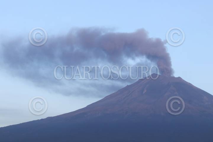 CUERNAVACA, MORELOS, 28DICIEMBRE2024.- El cielo despejado de esta mañana permite mirar el volcán Popocatépetl y su actividad desde la capital de Morelos. El volcán ha tenido una actividad incesante desde hace varias semanas, esta mañana la fumarola de agua, pequeñas cantidades de ceniza y gases volcanicos se dirige al sureste del estado de Puebla. FOTO: MARGARITO PÉREZ RETANA/CUARTOSCURO.COM