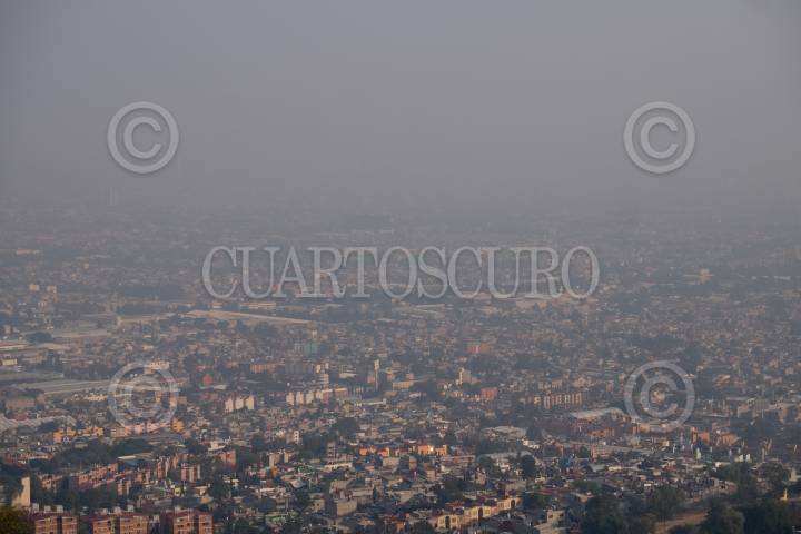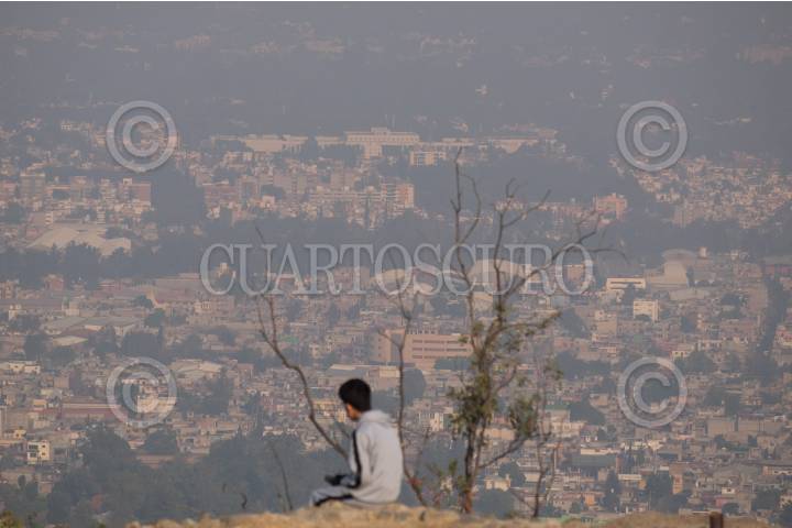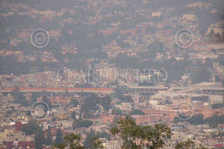 CIUDAD DE MÉXICO, 14MAYO2019.- Después de registrar 160 puntos de partículas menores en estaciones de calidad de aire, la Comisión Ambiental de la Megalópolis (Came), activó el Plan de Contingencia Extraordinaria para la capital. La calidad de aire se sigue manteniendo mala. Las recomendaciones son no realizar actividades al aire libre, reducir el uso del automóvil y usar cubre bocas. En la imagen, la vista desde la Pirámide del Fuego Nuevo en el Cerro de la Estrella. FOTO: GRACIELA LÓPEZ /CUARTOSCURO.COM
