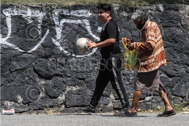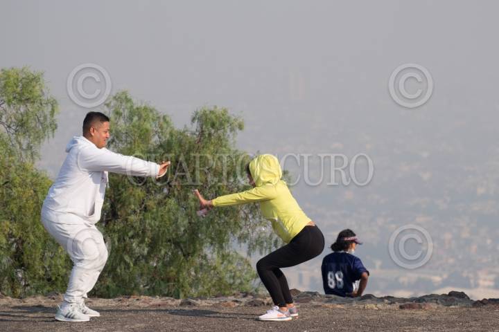 CIUDAD DE MÉXICO, 14MAYO2019.- Capitalinos realizaron actividades físicas en el corredor del Cerro de la Estrella, a pesar de la mala calidad de aire que hay en la ciudad. Después de registrar 160 puntos de partículas menores en estaciones de calidad de aire, la Comisión Ambiental de la Megalópolis (Came), activó el Plan de Contingencia Extraordinaria para la capital. La calidad de aire se sigue manteniendo mala por las faltas de condiciones climáticas que permitan la dispersión de contaminantes. Las recomendaciones son no realizar actividades al aire libre, reducir el uso del automóvil y usar cubre bocas. FOTO: GRACIELA LÓPEZ /CUARTOSCURO.COM