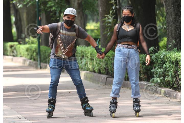 Pareja patina tomada de las manos en el Parque de los Venados .