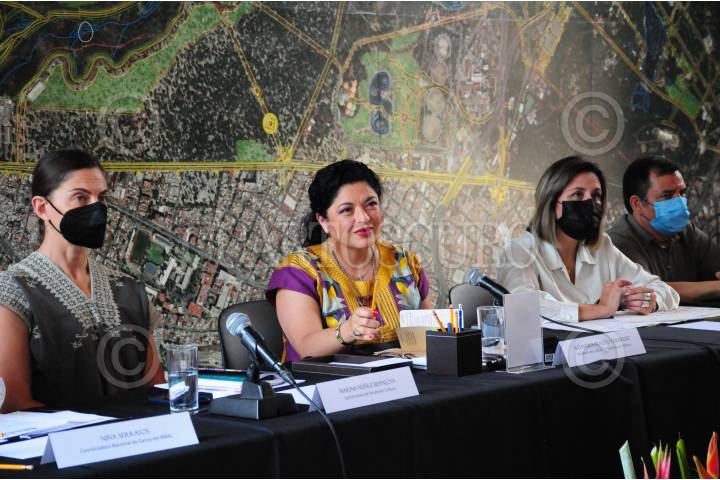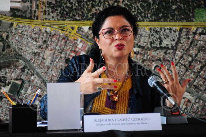 Conferencia encabezada por la secretaria de Cultura, Alejandra Fraustro.