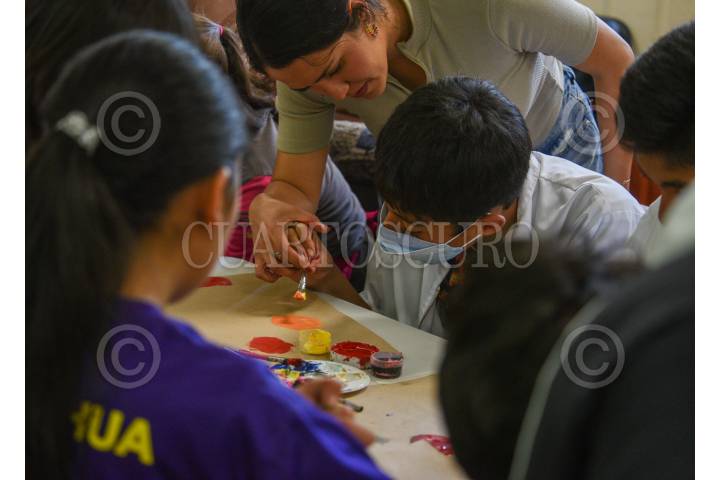 30 niños con diversas discapacidades participan en el Curso de Verano Aventura Adaptada que tiene como objetivo que practiquen diversas actividades recreativas y culturales, como la pintura con la artista Lety Estrella.