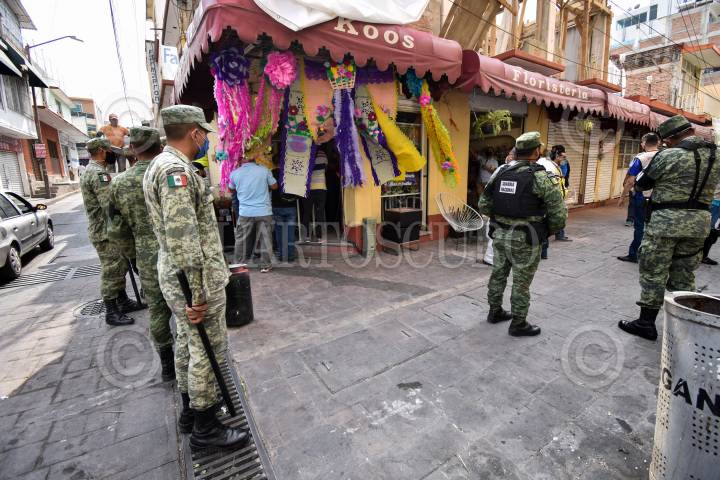 Elementos de la policía estatal y la Guardia Nacional acompañados por trabajadores de Cofepris realizaron el cierre de locales no esenciales para evitar la propagación del virus Covid-19.