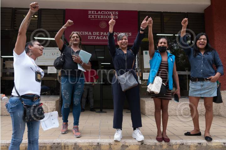 Kenya Cuevas, presidenta Fundadora y Directora Nacional de Casa de las Muñecas Tiresias A.C, acompañada de Mahia Michelle, la diputada Sandra Luevano y mujeres trans, protestaron para exigir por la la negación de la entrega de un pasaporte a la mujer trans Mahia Michelle, debido a que las autoridades exponían que sus documentos eran falsos por su cambio de género