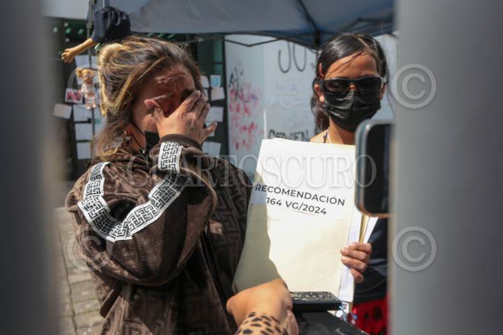 METEPEC, ESTADO DE MÉXICO, 31JULIO2025.- La mamá de Holy Yash, quien pide ser ingresada al registro estatal de víctimas tiene desde hace una semana tomadas las instalaciones de la Comisión Ejecutiva de Atención a Víctimas del Estado de México (CEAVEM) en Metepec. FOTO: CRISANTA ESPINOSA AGUILAR/CUARTOSCURO.COM