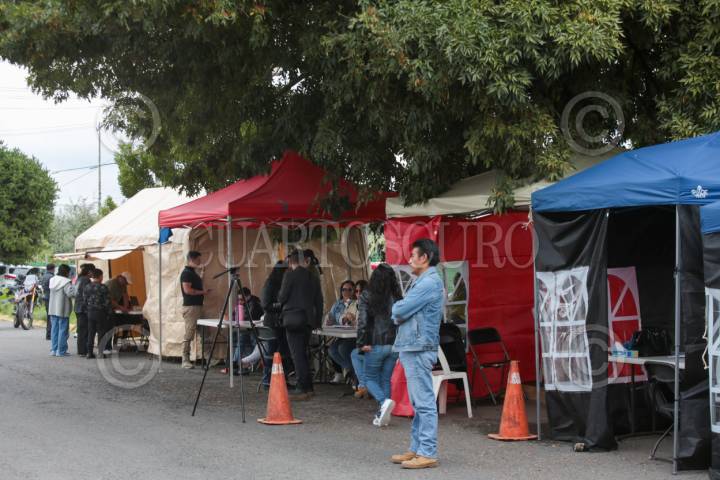 METEPEC, ESTADO DE MÉXICO, 31JULIO2025.- Personal de la Comisión Ejecutiva de Atención a Víctimas del Estado de México (CEAVEM) en Metepec atiende en carpas ante la toma de las instalaciones por la madre de Holy Yash, quien pide ser ingresada al registro estatal de víctimas; ante esto familiares de víctimas de feminicidio, violencia, desaparición y activistas temen que las personas que se encuentran al interior puedan acceder a su información, piden la intervención de las autoridades para recuperar las instalaciones y protegen la información de sus casos. FOTO: CRISANTA ESPINOSA AGUILAR/CUARTOSCURO.COM