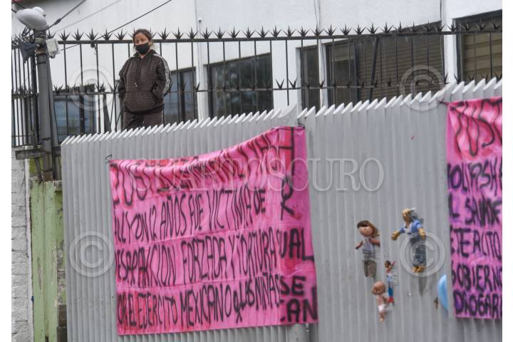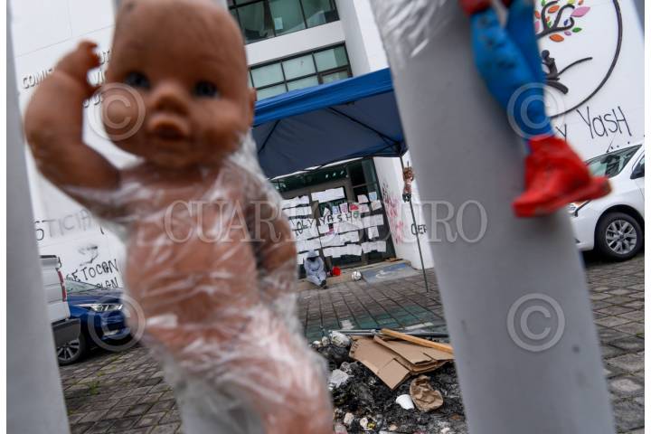 METEPEC, ESTADO DE MÉXICO, 31JULIO2025.- Con muñecas en las rejas la mamá de Holy Yash, pide ser ingresada al registro estatal de víctimas tiene desde hace una semana tomadas las instalaciones de la Comisión Ejecutiva de Atención a Víctimas del Estado de México (CEAVEM) en Metepec. FOTO: CRISANTA ESPINOSA AGUILAR/CUARTOSCURO.COM