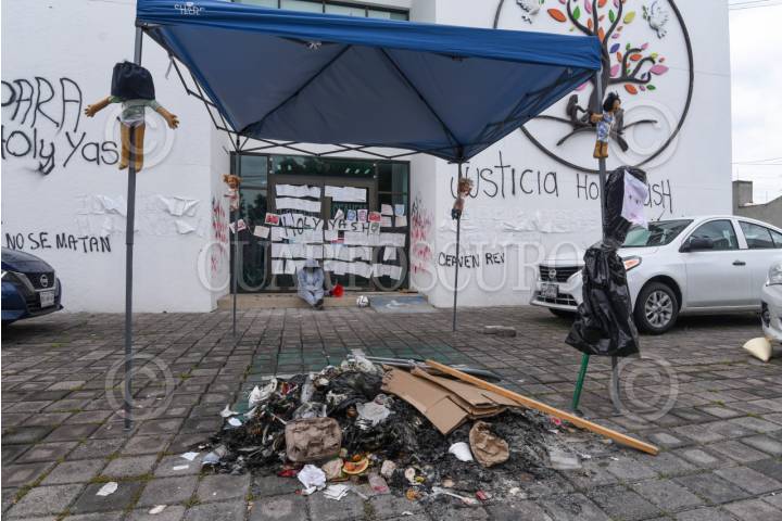 METEPEC, ESTADO DE MÉXICO, 31JULIO2025.- Desde hace una semana las instalaciones de la Comisión Ejecutiva de Atención a Víctimas del Estado de México (CEAVEM) en Metepec permanecen cerradas, fueron tomadas por la madre de Holy Yash, quien pide ser ingresada al registro estatal de víctimas, ante esto familiares de víctimas de feminicidio, violencia, desaparición y activistas temen que las personas que se encuentran al interior puedan acceder a su información, piden la intervención de las autoridades para recuperar las instalaciones y protegen la información de sus casos. FOTO: CRISANTA ESPINOSA AGUILAR/CUARTOSCURO.COM