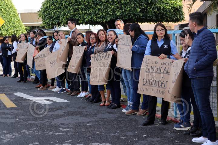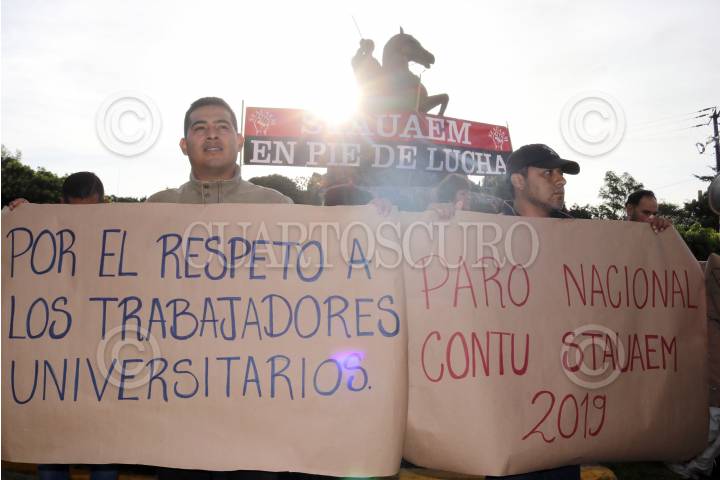 CUERNAVACA, MORELOS, 09OCTUBRE2019.- En cumplimiento con los acuerdos tomados en la Confederación Nacional de Trabajadores Universitarios, trabajadores sindicalizados académicos y administrativos de la Universidad Autónoma del Estado de Morelos, realizaron un paro activo en todas las unidades académicas, para exigir mayor presupuesto para las universidades públicas. FOTO: MARGARITO PÉREZ RETANA /CUARTOSCURO.COM