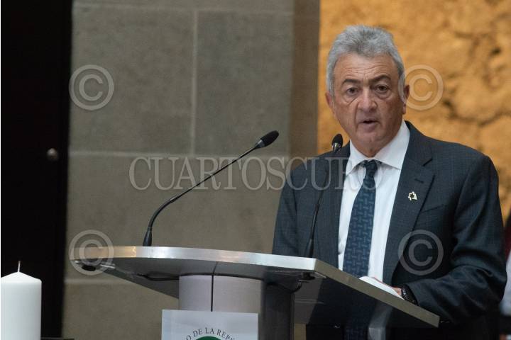 Zvi Itzhak Tal, embajador del Estado de Israel en México, durante el "Acto de Conmemoración Anual en Memoria de las Víctimas del Holocausto y en Recuerdo de Don Gilberto Bosques Saldívar", realizado en la Antigua Casona de Xicoténcatl.