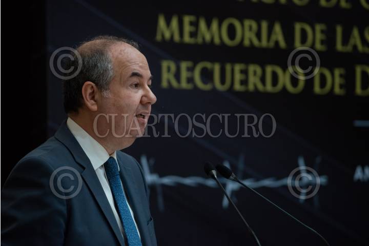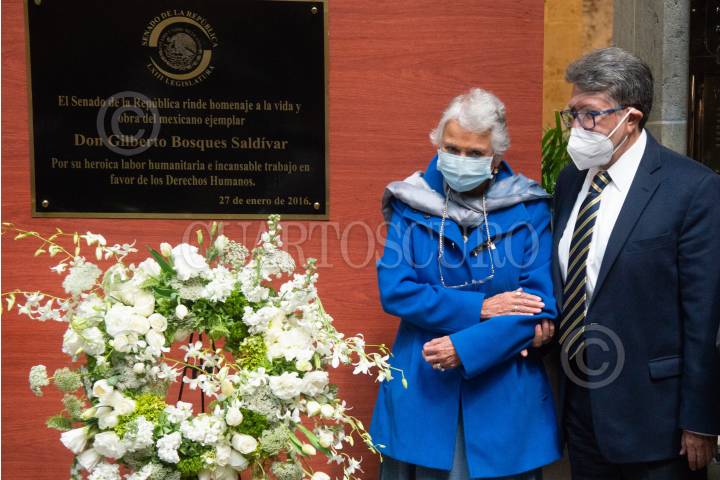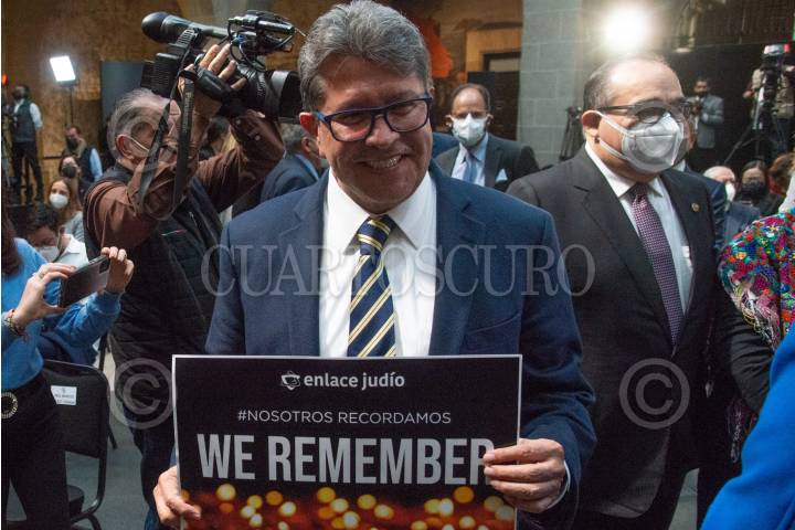 Gilberto Bosques Tistler; Olga Sánchez Cordero, presidenta de la mesa directiva de la Cámara de Senadores; Ricardo Monreal, senador y coordinador de Morena; Marcos Shabot Zonana, presidente del Comité Central de la Comunidad Judía, y Jean-Pierre Asvazadourian, embajador de Francia en México, encabezaron el "Acto de Conmemoración Anual en Memoria de las Víctimas del Holocausto y en Recuerdo de Don Gilberto Bosques Saldívar", realizado en la Antigua Casona de Xicoténcatl.