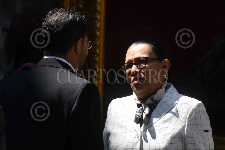 CIUDAD DE MÉXICO, 10ABRIL2024.- Bertha María Alcalde Luján, titular del ISSSTE y Luisa María Alcalde, secretaria de Gobernación, durante el 105 aniversario luctuoso de Emiliano Zapata en el Patio de Honor del Palacio Nacional. FOTO: MARIO JASSO/CUARTOSCURO.COM
