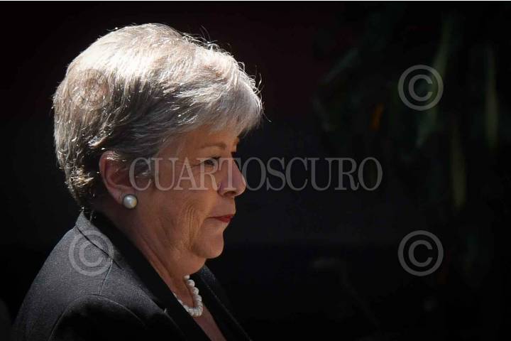 CIUDAD DE MÉXICO, 10ABRIL2024.- Alicia Bárcena, secretaria de Relaciones Exteriores, durante el 105 aniversario luctuoso de Emiliano Zapata en el Patio de Honor del Palacio Nacional. FOTO: MARIO JASSO/CUARTOSCURO.COM