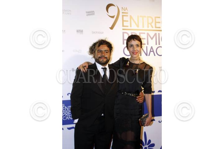 PUEBLA, PUEBLA, 12ABRIL2013.- El conductor Mauricio Barrientos "El Diablito" y Cecilia Suárez posan en la alfombra roja de la novena entrega de los premios de la Cámara Nacional de la Industria del Cine y del Videograma (CANACINE) que se realizó en la ex-fábrica la Constancia Mexicana de la ciudad de Puebla. FOTO: HILDA RÍOS / CUARTOSCURO.COM