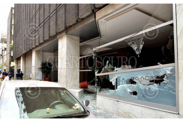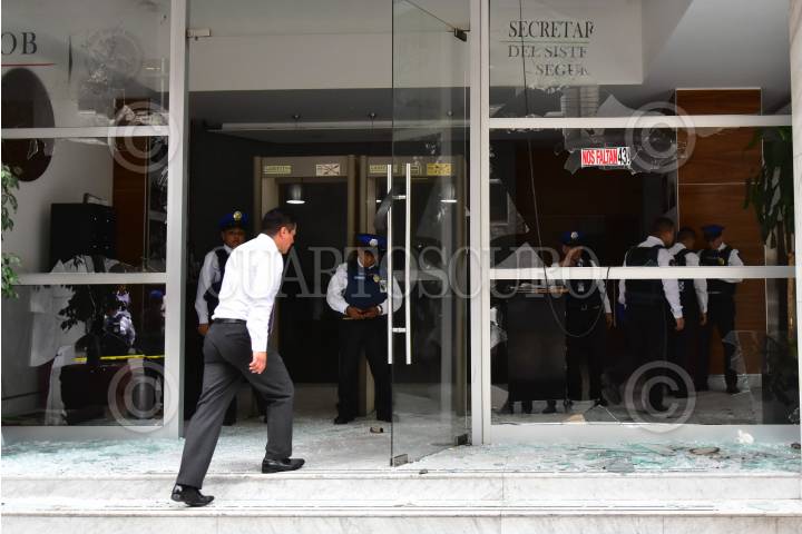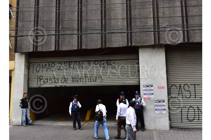 CIUDAD DE MÉXICO, 02MAYO2017.- Normalistas que apoyan a los padres de los 43 normalistas desaparecidos del normal “Raúl Isidro Burgos” destrizaron los vidrios del Secretariado Ejecutivo del Sistema Nacional de Seguridad Publica, ubicado en la calle de Eucken de la colonia Anzures, en el lugar realizaron pintas en contra de Tomás Zerón de Lucio, a quien acusan de fabricar pruebas en las investigaciones del paradero de los estudiantes secuestrados en Iguala. FOTO: ARMANDO MONROY /CUARTOSCURO.COM