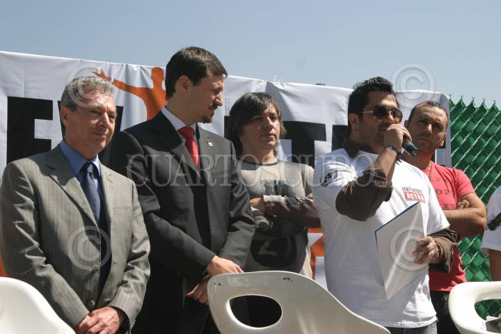 MÉXICO D.F., 16OCTUBRE2009.- Cesar Costa, representante de la UNICEF y la Iguana, guitarristas del grupo Elefante, acudieron como embajadores del evento "Levántate Actúa, Contra la Pobreza y por los Objetivos de Desarrollo del Milenio" una iniciativa mundial y levantarnos junto con millones de personas de todo el mundo, para mostrar nuestro compromiso con la lucha contra la pobreza extrema y la desigualdad. El año pasado, 43 millones de personas en todo el mundo dijeron "¡basta!" levantándose para incentivar a los gobiernos a cumplir sus promesas y sumar esfuerzos para acabar con la pobreza mundial antes del 2015, según cifras de la ONU. Decenas de personas se dieron cita en sus instalaciones con sede en la capital en la cual alzaron los brazos en apoyo a esta iniciativa al mismo tiempos que miles de personas lo hicieron en todo el orbe. FOTO: MOISÉS PABLO/CUARTOSCURO.COM
