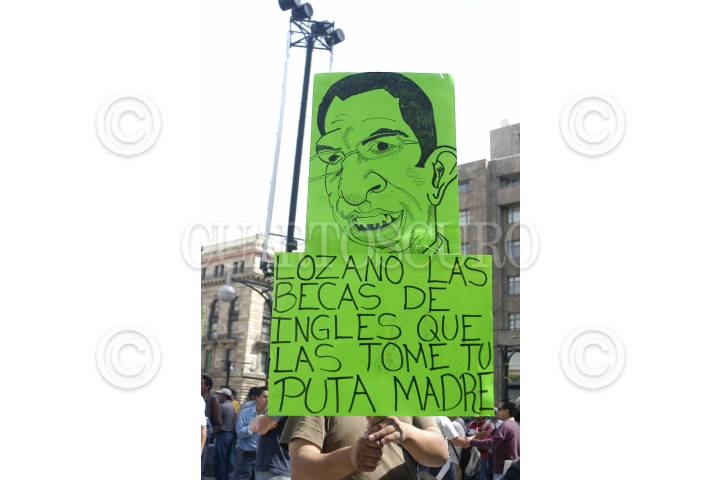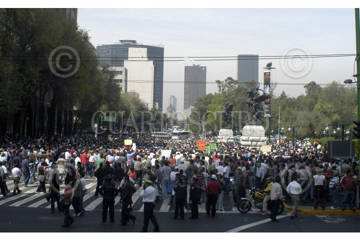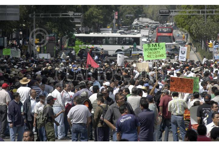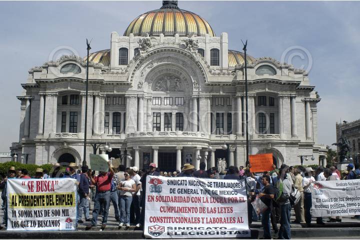 MÉXICO, D.F., 21OTCUBRE2009.- Integrantes del sindicato Mexicano de electricistas se concentraron en las inmediaciones del Palacio de Bellas Artes para dirigirse a las instalaciones del Senado de la República donde lanzaron consignas en contra del Presidente de la República y de Javier Lozano, actual Secretario del Trabajo. FOTO: LUIS CARBAYO/CUARTOSCURO.COM