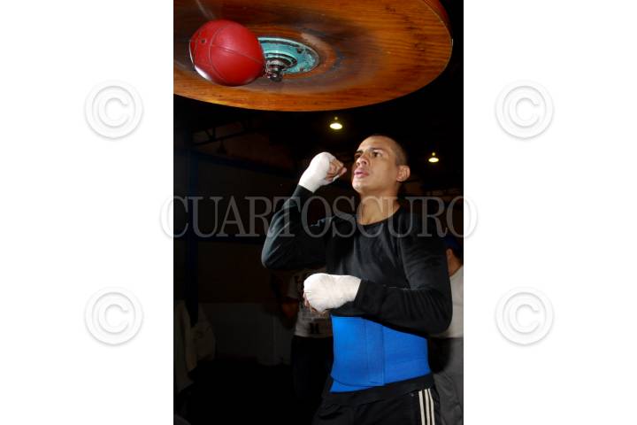 MÉXICO, D.F., 22ENERO2010.- Gustavo Espadas alias el "Guty" durante su entrenamiento previo a la pelea para disputar el campeonato mundial pluma del CMB, donde se enfrentará ante el actual campeón Elio Rojas de Republica Dominicana la pelea se realizará en su natal Mérida el 20 de Febrero. FOTO: SÁSHENKA GUTIÉRREZ/CUARTOSCURO.COM
