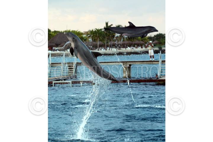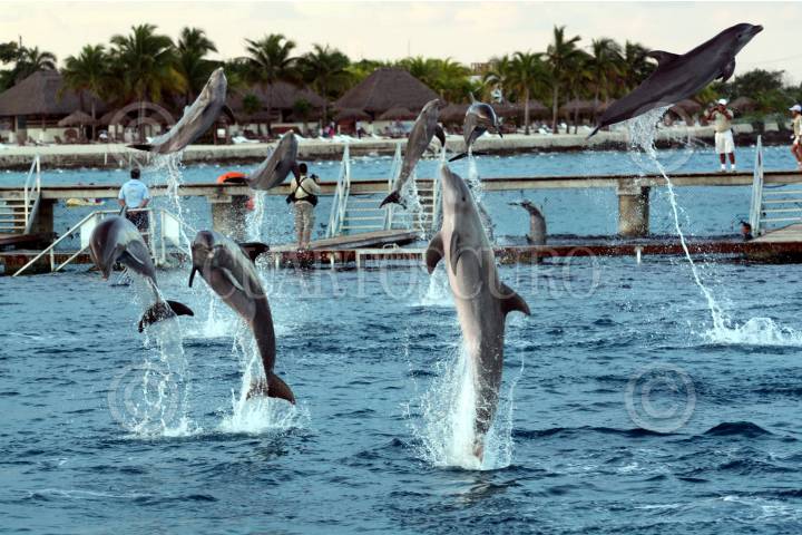 CANCÚN, QUINTANA ROO, 28ENERO2010.- Dolphin discovery, cuenta con 6 delfinarios en destinos turísticos así como el recientemente inaugurado en la ciudad de México. En la imagen delfines realizando rutinas. FOTO: AMARANTA PRIETO/CUARTOSCURO.COM