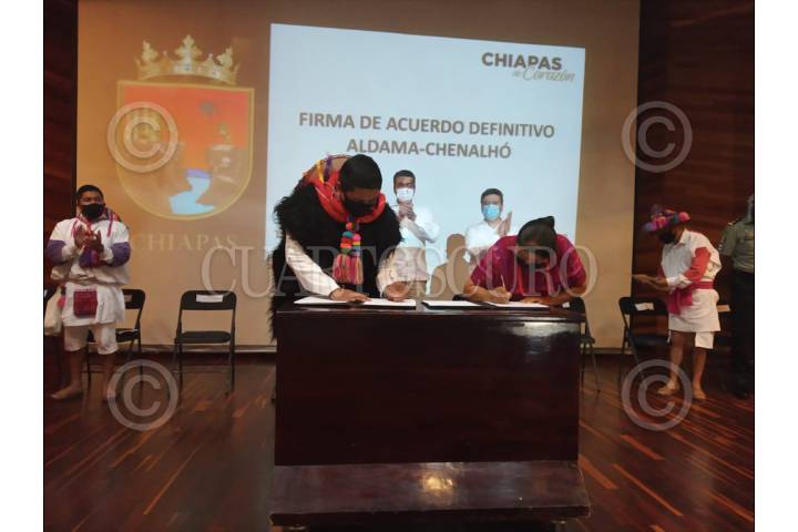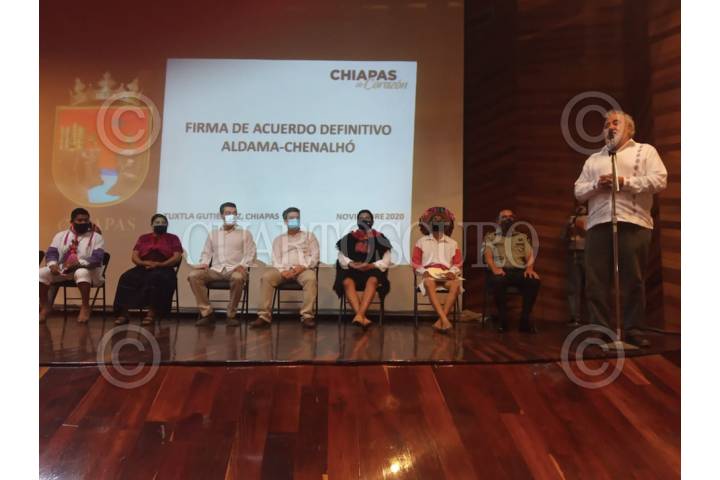 Firma del acuerdo definitivo que resuelve el problema agrario para los municipios de Aldama y Chenalhó, ante el subsecretario de Derechos Humanos, Población y Migración, Alejandro Encinas.