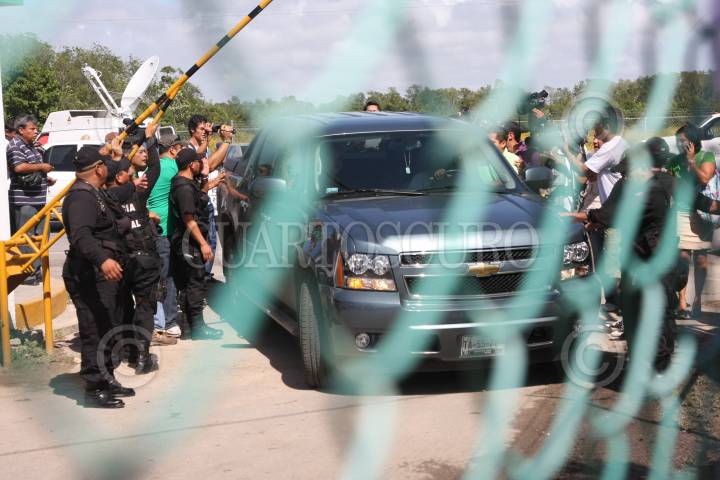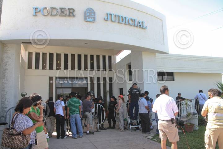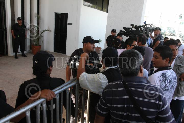 CHETUMAL, QUINTANA ROO, 25ENERO2011.- Autoridades judiciales del poder Judicial colocaron una valla de protección, para que los distintos medios informativos no puedan tener acceso hacia el interior de los juzgados donde se lleva caso del cantante Kalimba, acusado de haber violado a una menor. FOTO: MIGUEL SÁNCHEZ/CUARTOSCURO.COM