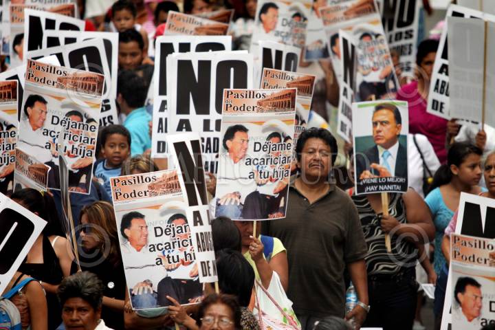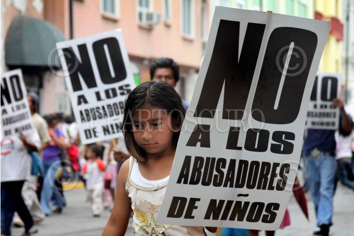 VERACRUZ, VERACRUZ, 22ABRIL2010.- Cerca de 500 personas marcharon por la zona centro en la cual acusaron a el candidato gubernamental panista y ex director nacional del ISSSTE, Miguel Ángel Yunes Linares, de pederasta. Los inconformes no quisieron dar entrevistas, pero portaban pancartas y panfletos. Al político se le menciona en el libro “Los demonios del edén” escrito por la periodista Lidia Cacho, donde hacía referencia a diversos casos de abuso infantil. FOTO: FÉLIX MÁRQUEZ/CUARTOSCURO.COM