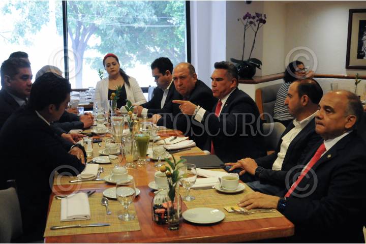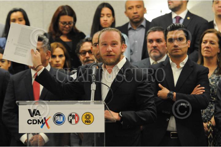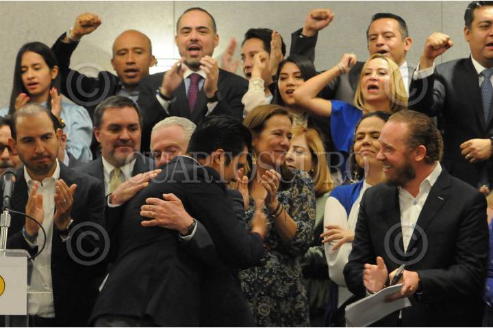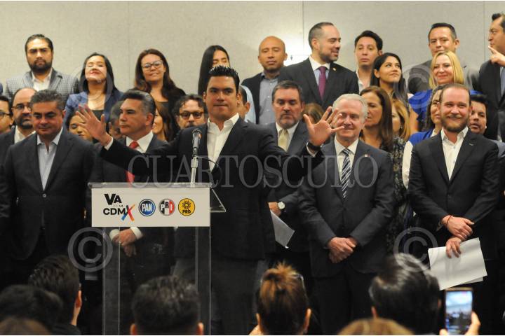Jorge Romero, diputado del PAN, llega acompañado por dirigentes del PRI, PRD y PAN.