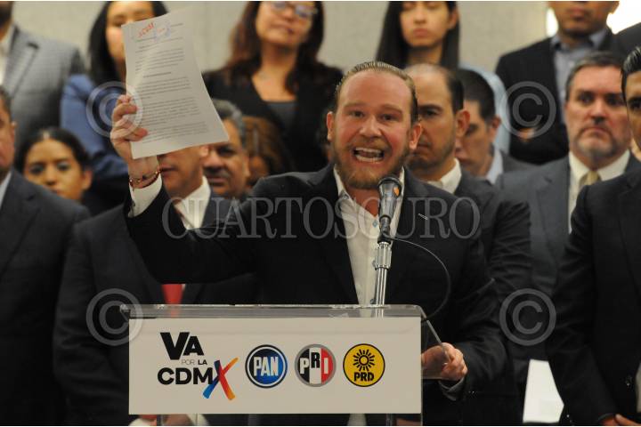 Santiago Taboada, Alcalde de Benito Juárez, muestra el acuse de la demanda qué interpondrán él y Jorge Romero ante la Fiscalía capitalina, por las acusaciones en su contra.