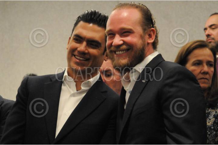 Santiago Taboada, Alcalde de Benito Juárez y Jorge Romero, diputado del PAN, dialogan durante el evento.