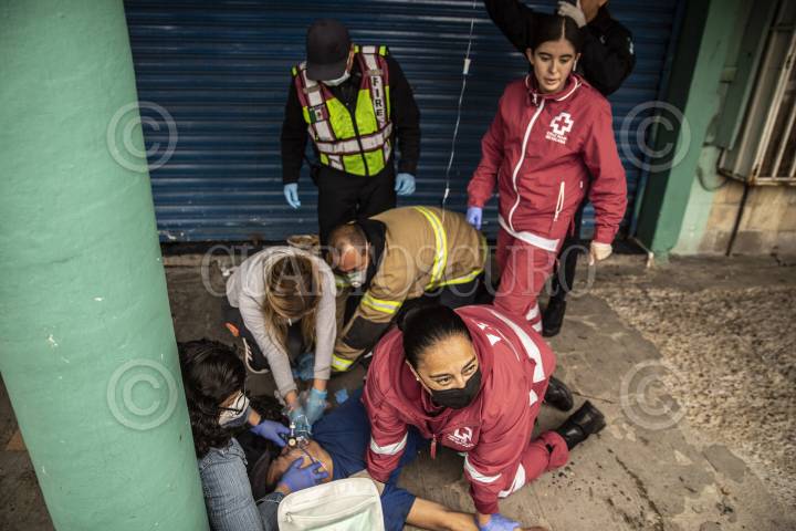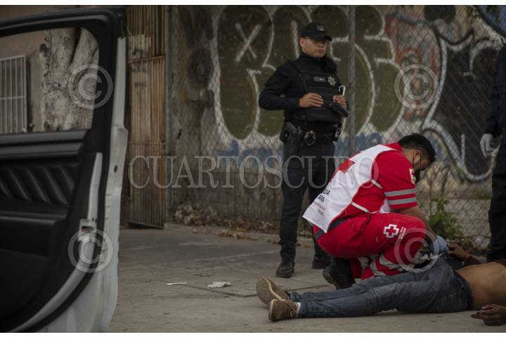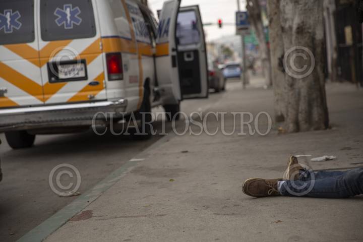 Un hombre que presenta sobredosis es atendido por paramédicos en la Zona Norte de Tijuana.