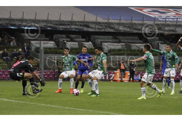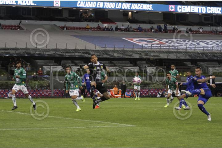 CIUDAD DE MÉXICO, 31OCTUBRE2019.- La máquina celeste del Cruz Azul empata 0-0 al medio tiempo, frente a la escuadra de los panzas verdes del León, esto correspondiente a la jornada 16 de la Liga MX, disputada en el estadio Azteca. FOTO: ROGELIO MORALES /CUARTOSCURO.COM