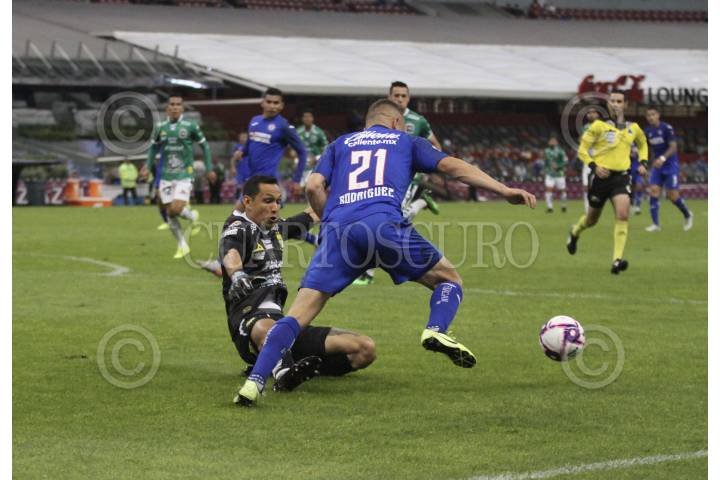 CIUDAD DE MÉXICO, 31OCTUBRE2019.- La máquina celeste del Cruz Azul ganó 1-0 con gol de Milton Caraglio a la escuadra de los panzas verdes del León, esto correspondiente a la jornada 16 de la Liga MX, disputada en el estadio Azteca. FOTO: ROGELIO MORALES /CUARTOSCURO.COM