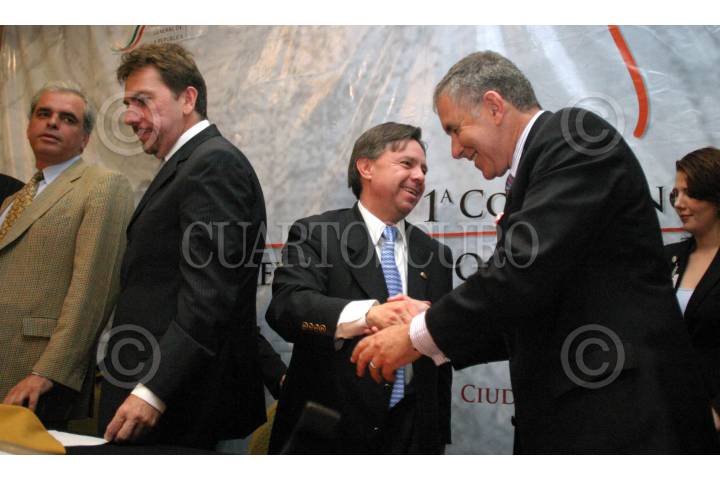 MÉXICO, D.F. 12JUNIO2006.- Eduardo Medina Mora, Secretario de Seguridad Pública Federal y Abraham Stein Secretario Adjunto de del Comite Internaccional para el control de Drogas durante la clausura de la 1er Conferencia Internacional en Prevención del Delito y la Drogadicción. FOTO:Guillermo Perea/CUARTOSCURO.COM
