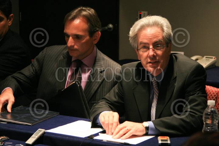 MÉXICO, D.F., 08DICIEMBRE2009.- Carlos Pascual, embajador de Estados Unidos y Arturo Valenzuela, secretario de estado adjunto para América Latina, ofrecieron una conferencia de prensa con algunos medios locales, en un hotel del Centro Histórico. FOTO: MOISÉS PABLO/CUARTOSCURO.COM