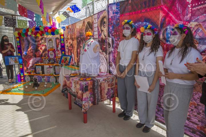 Señoritas privadas de la libertad son trasladadas a su celda después de participar en un concurso de altares en el Centro de Internamiento para Adolescentes de Ensenada