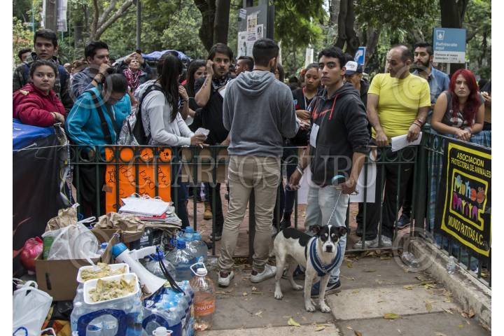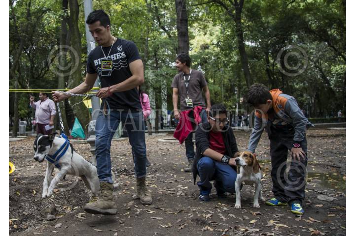 CIUDAD DE MÉXICO, 24SEPTIEMBRE2017.-El Parque México ubicado en la colonia Condesa se convirtió en un centro de adopción para los perros que se perdieron durante el sismo del martes pasado, capitalinos acuden al lugar algunos buscando a sus mascotas perdidas y otros con la intención de adoptar a los animales y otra oportunidad de formar parte de una nueva familia. En el lugar también está funcionando como centro de acopio de croquetas y atención veterinaria. FOTO: CHRISTIAN SERNA /CUARTOSCURO.COM