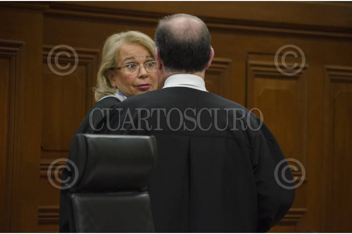 MÉXICO, D.F., 11AGOSTO2015.- Los ministros de la Suprema Corte de Justicia de la Nación continuaron la discusión en torno a la propuesta de proyecto para la legalización de adopción para parejas del mismo sexo en el estado de Campeche. A pesar de que existe una mayoría que respalda el proyecto, aun existen diferencias en materia de permitir la adopción bajo el argumento de que debe prevalecer el interés superior del menor. El proyecto surgió como propuesta de la ministra Margarita Luna Ramos, quien no asistió a la sesión de pleno este día. En la imagen, la ministra Olga Sánchez Cordero y Alberto Pérez Dayán. FOTO: MARÍA JOSÉ MARTÍNEZ /CUARTOSCURO.COM