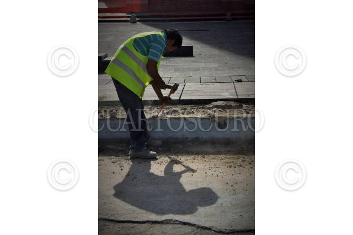 CIUDAD DE MÉXICO, 03JULIO2025.- Trabajos de sustitución de adoquín en la calzada Tlalpan como parte su rehabilitación integral que contempla también la instalación de jardineras y luminarias. FOTO: MARIO JASSO/CUARTOSCURO.COM