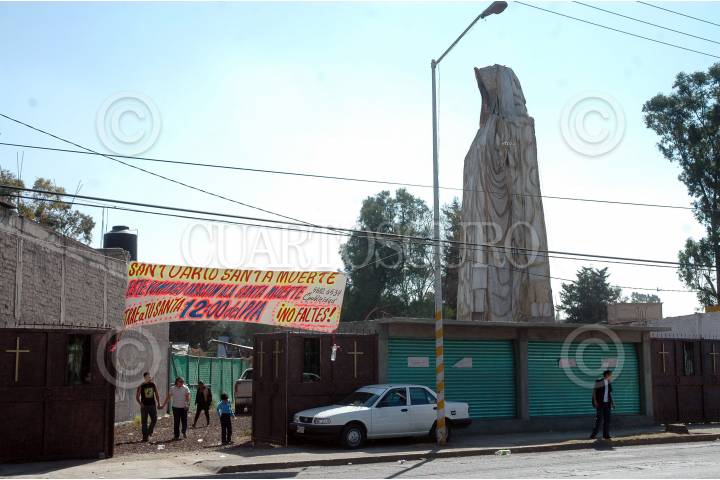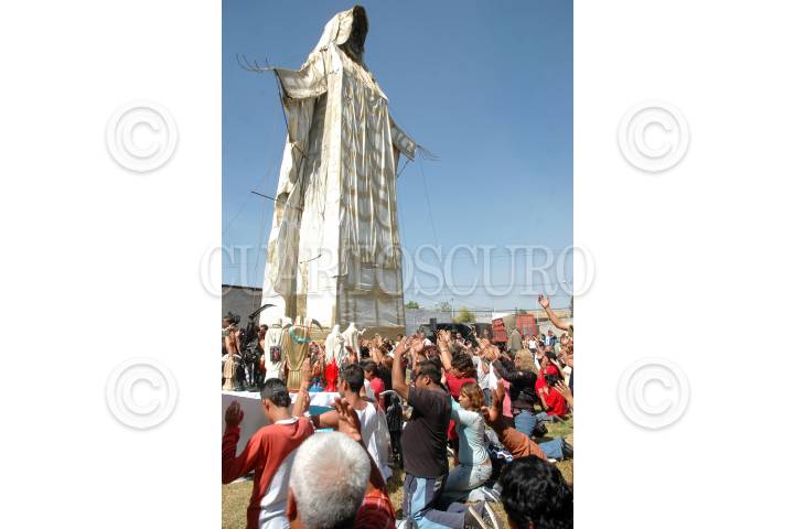 TULTITLAN, ESTADO DE MÉXICO, 27ENERO2008.- En el kilómetro 25 de la avenida Lopez Portillo en la colonia Santa María Cuautepec en el municipio de Tultitlan Estado de México, existe una imagen de la Santa Muerte considerada la mas grande de Latinoamerica y la que mide poco mas de 22 metros, al medio día de este domingo se realizo una misa de culto a la cuál asistieron cientos de seguidores de la niña blanca. FOTO: RODOLFO ANGULO/CUARTOSCURO.COM