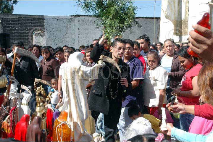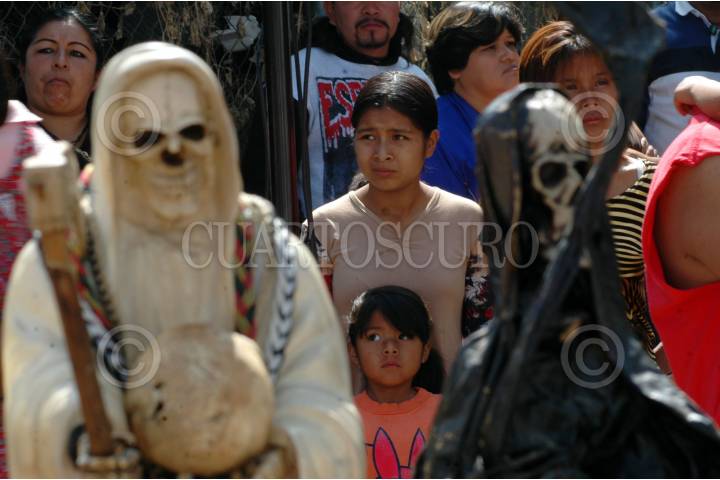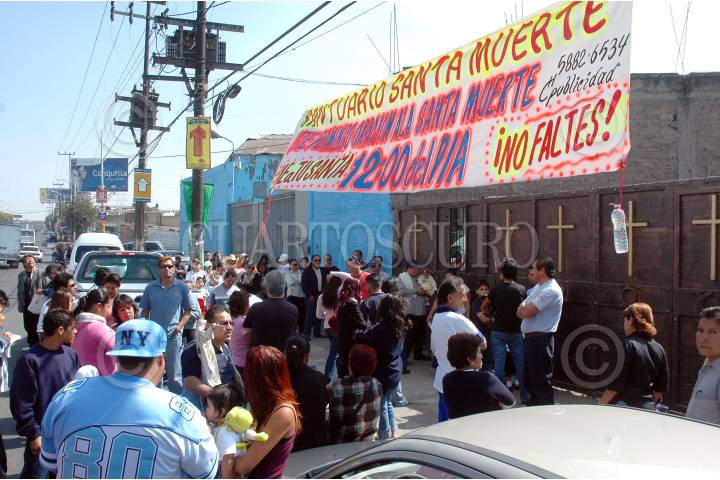 TULTITLAN, ESTADO DE MÉXICO, 27ENERO2008.- Decenas de fieles de la Santa Muerte asistieron a la misa que se realizo en el santuario que se encuentra en Santa Maria Cuautepec en el municipio de Tultitlan. FOTO: RODOLFO ANGULO/CUARTOSCURO.COM