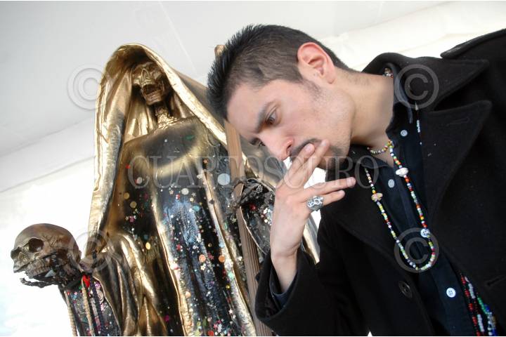 TULTITLAN, ESTADO DE MÉXICO, 27ENERO2008.- El Padrino Endoque Comandante Pantera quién llevo acabo la ceremonia en el santuario de la Santa Muerte que se encuentra en Santa Maria Cuautepec en el municipio de Tultitlan. FOTO: RODOLFO ANGULO/CUARTOSCURO.COM