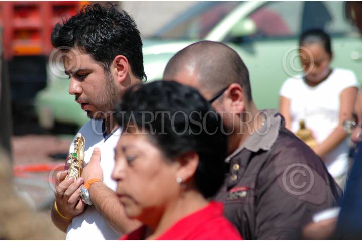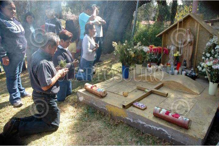 TULTITLAN, ESTADO DE MÉXICO, 27ENERO2008.- Decenas de fieles de la Santa Muerte oran durante la misa que se realizo en el santuario que se encuentra en Santa Maria Cuautepec en el municipio de Tultitlan. FOTO: RODOLFO ANGULO/CUARTOSCURO.COM