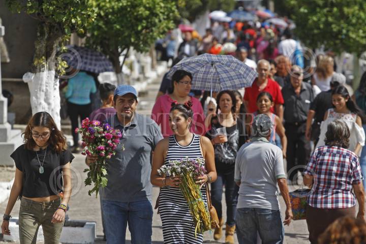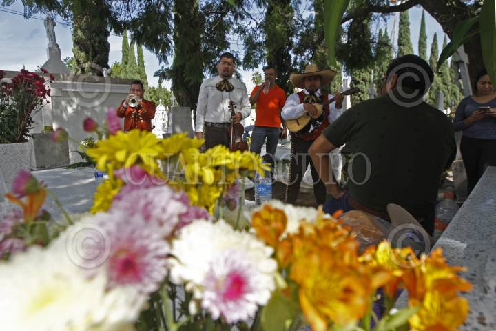 GUADALAJARA, JALISCO. 02NOVIEMBRE2017.- Miles de personas acuden a los diversos panteones de la ciudad a visitar, hacer oraciones, llevar arreglos florales, serenatas y adornar las tumbas donde descansan los restos de sus familiares difuntos, esto ya que hoy se celebra el Día de Muertos en México. Según autoridades municipales se espera un afluencia final de visitantes de aproximadamente 95,555 personas y hasta este momento los incidentes han sido mínimos en torno a la celebración. FOTO: FERNANDO CARRANZA GARCIA / CUARTOSCURO.COM